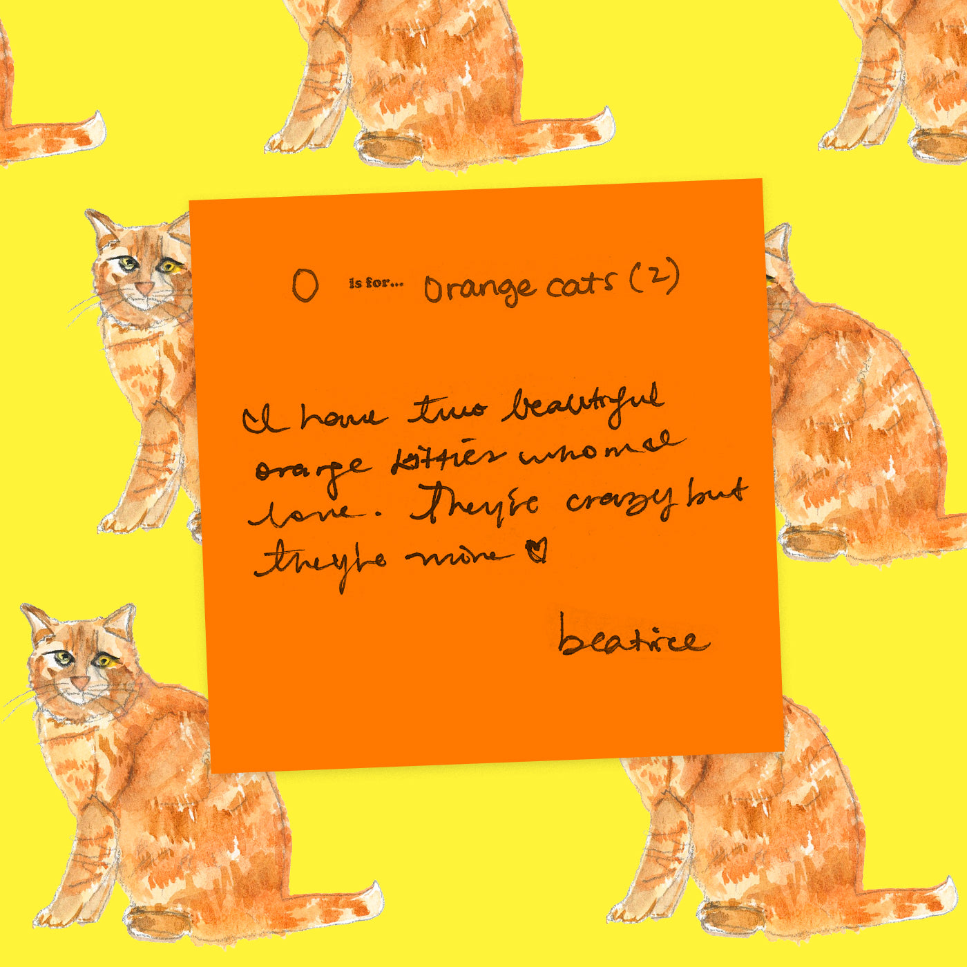 "I have two beautiful orange kitties whom I love. They're crazy but they're mine <3"