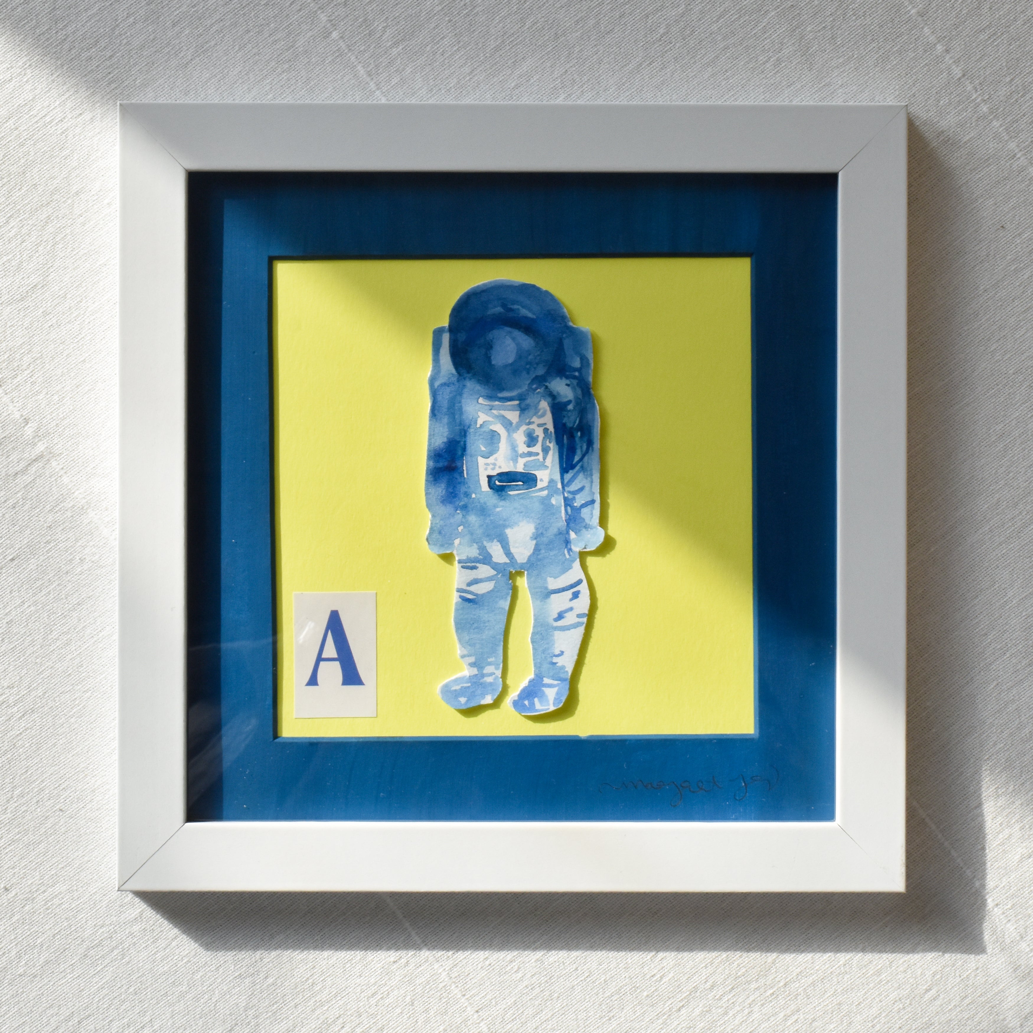 Float through the cosmos with this whimsical watercolor astronaut, a piece that perfectly captures the spirit of exploration and imagination. Originally inspired by a creative prompt for the letter "A", this adventurous space explorer has become one of my most beloved designs, combining playful details with celestial wonder.