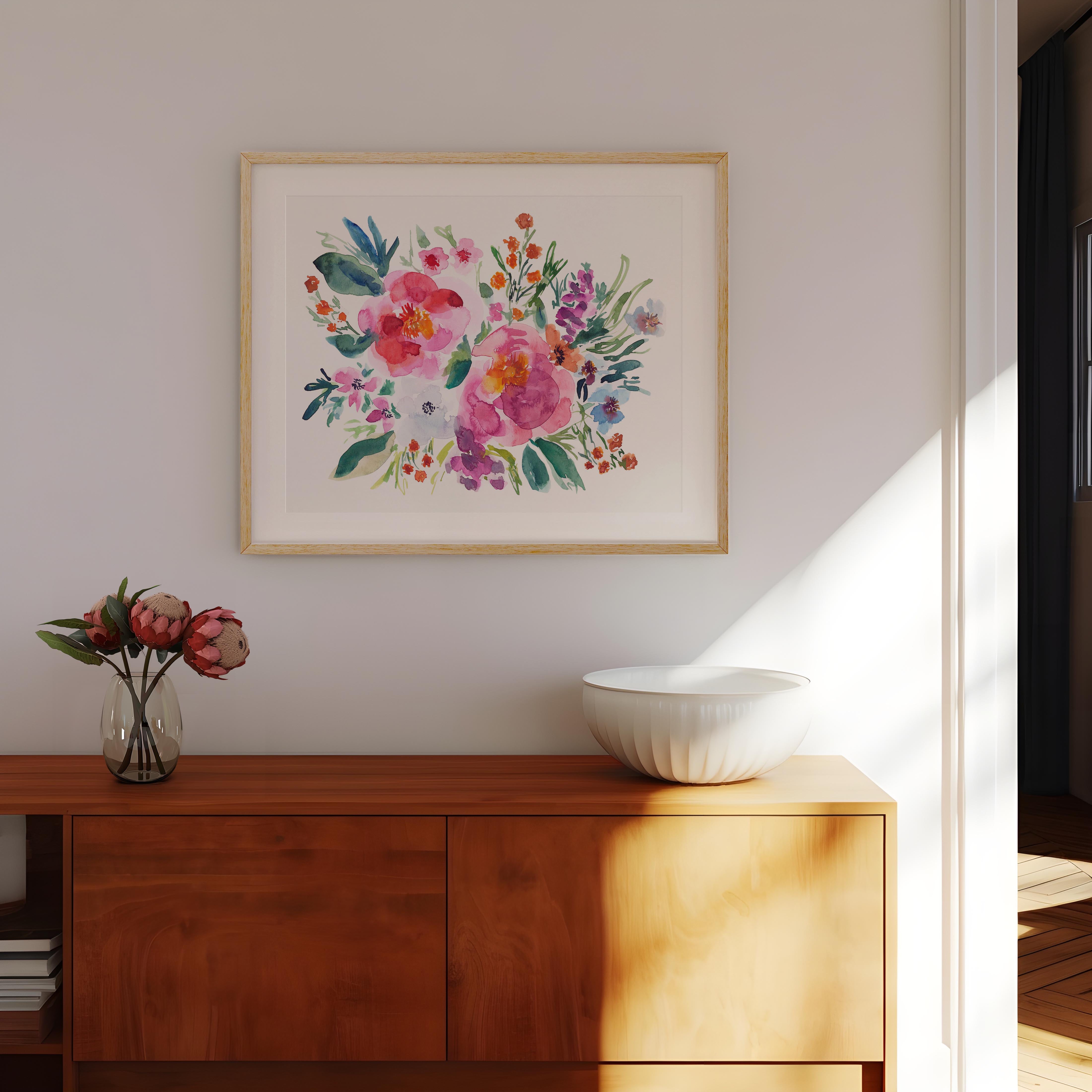 Borderless giclée print, created from an original watercolor painting and printed on premium archival hot press matte paper.