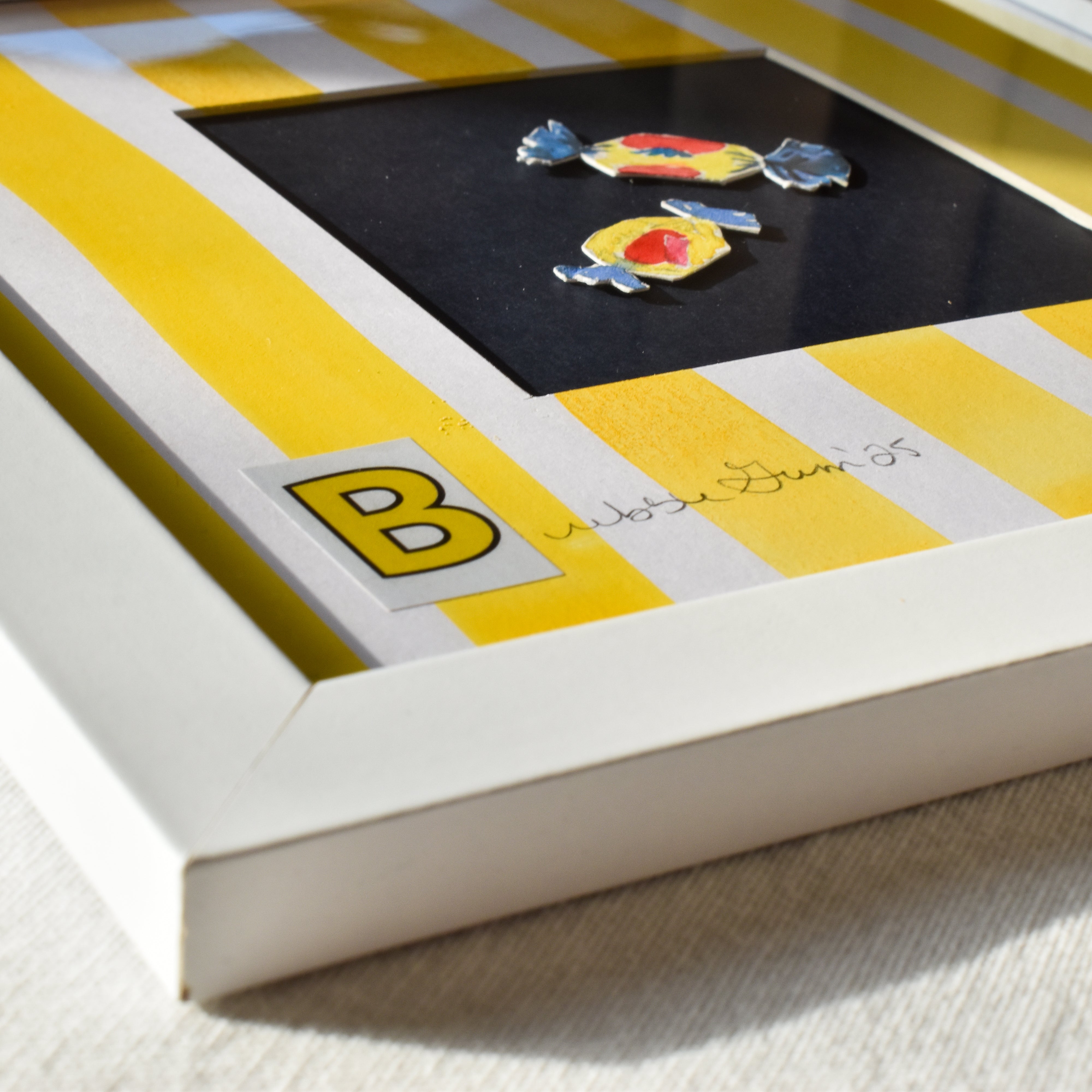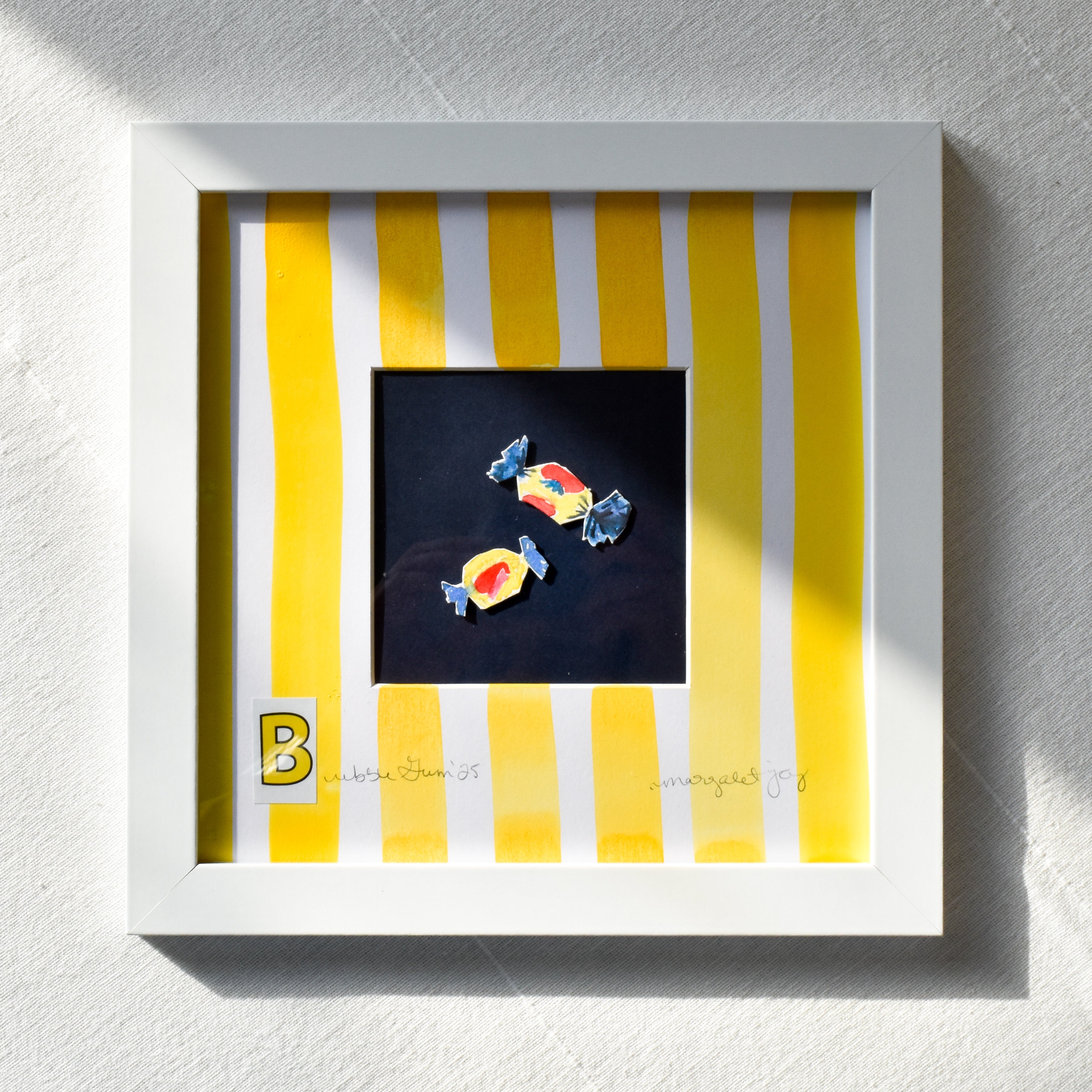 - Each original artwork comes in a white frame measuring 9" x 9".