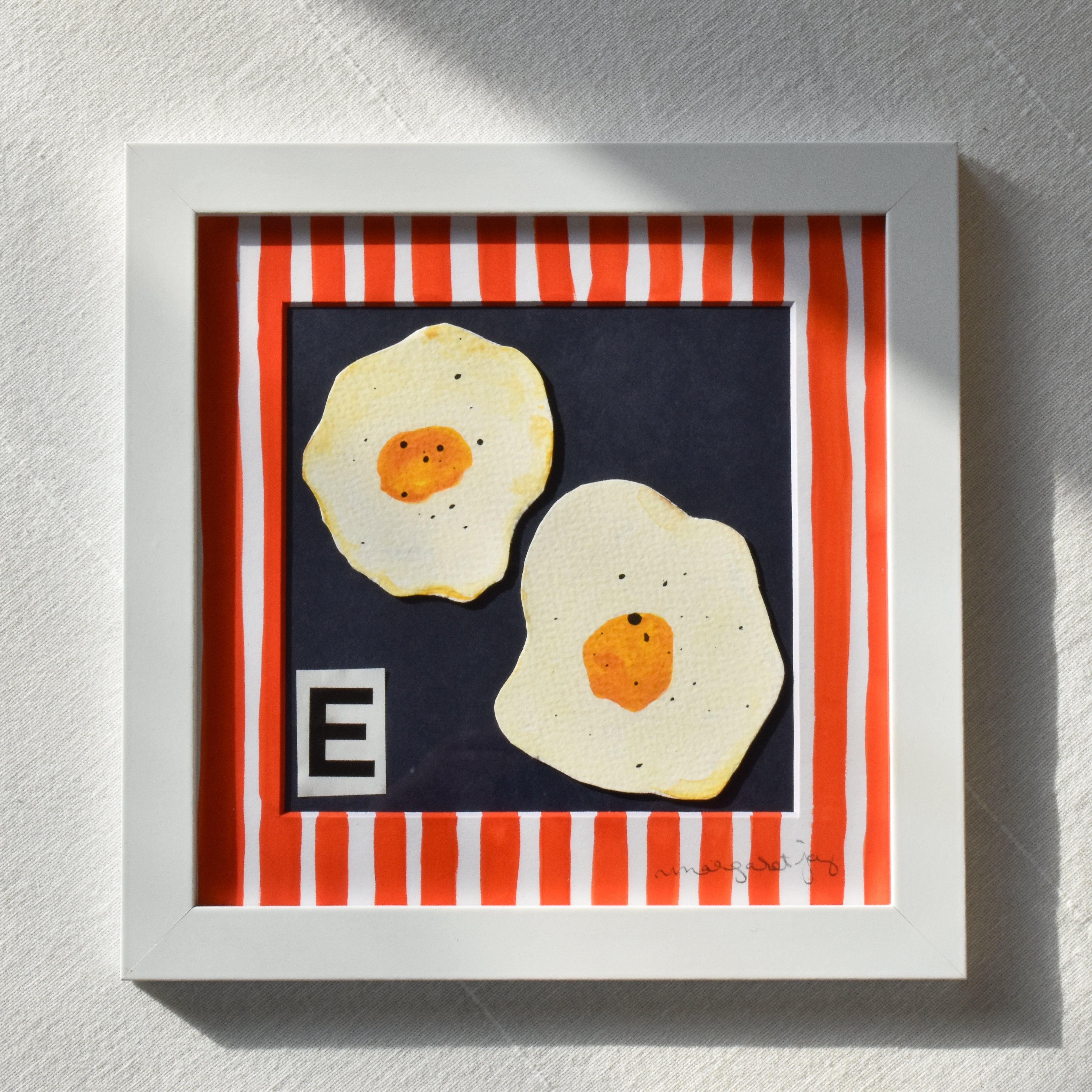 This charming piece celebrates a morning classic - the humble egg. Part of the "MJ & Friends Vol. 1" collection, this playful egg illustration combines watercolor with mixed media elements to create a piece that's both charming and contemporary.