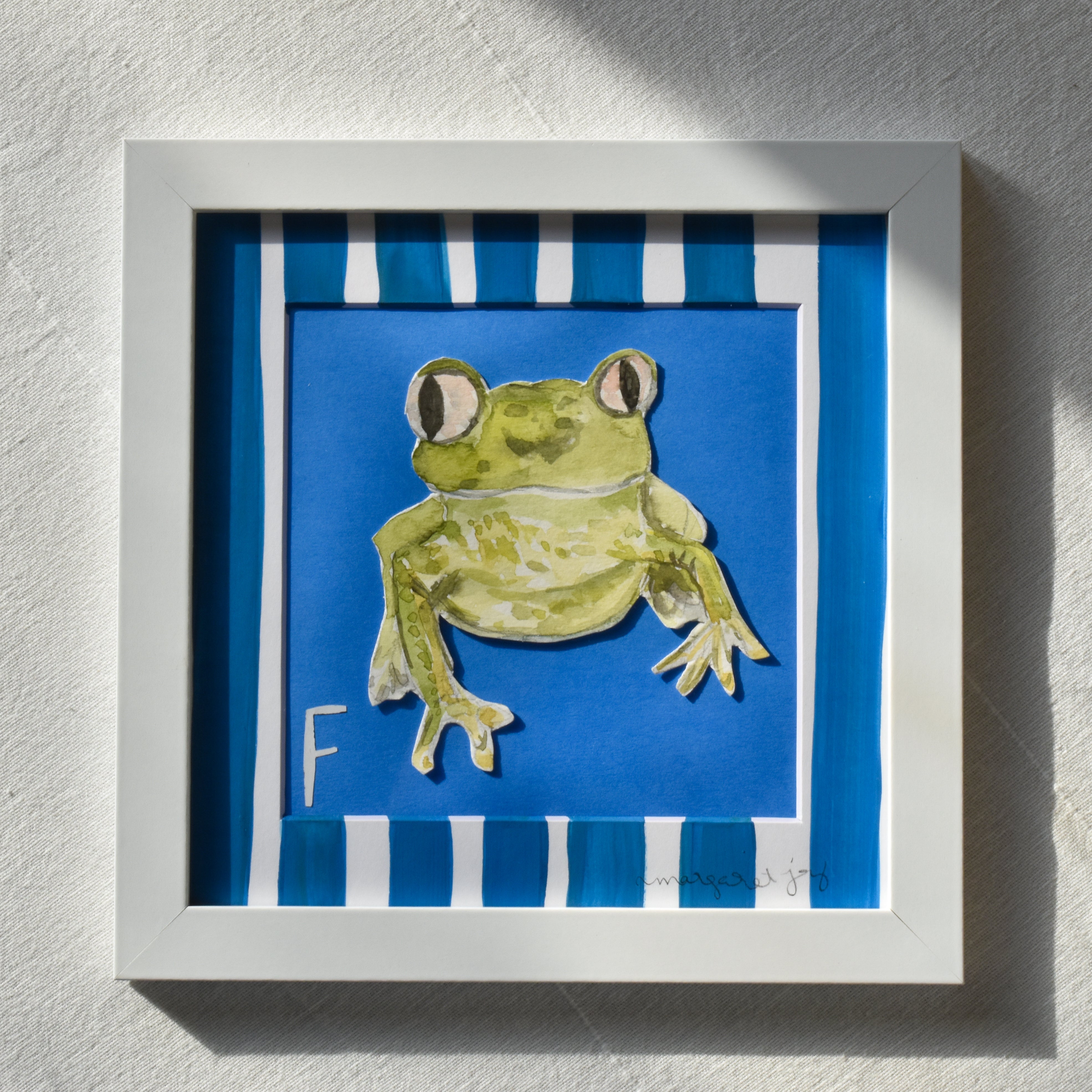 Hop into joy with this charming amphibian friend from the "MJ & Friends Vol. 1" collection! This playful frog, brought to life through expressive watercolor strokes and mixed media elements, captures the spirit of whimsy and adventure.