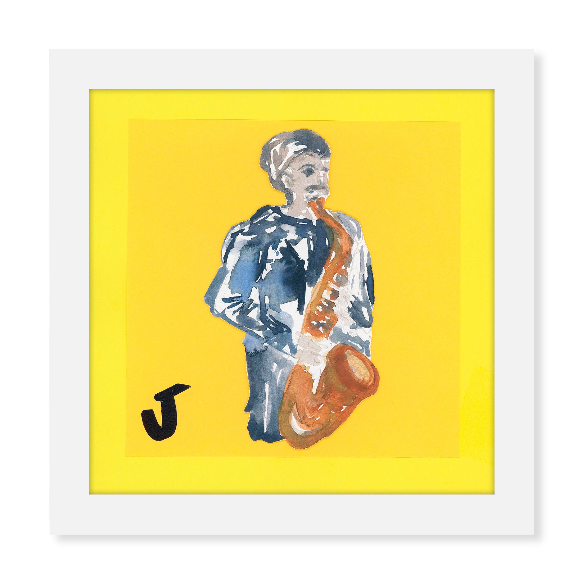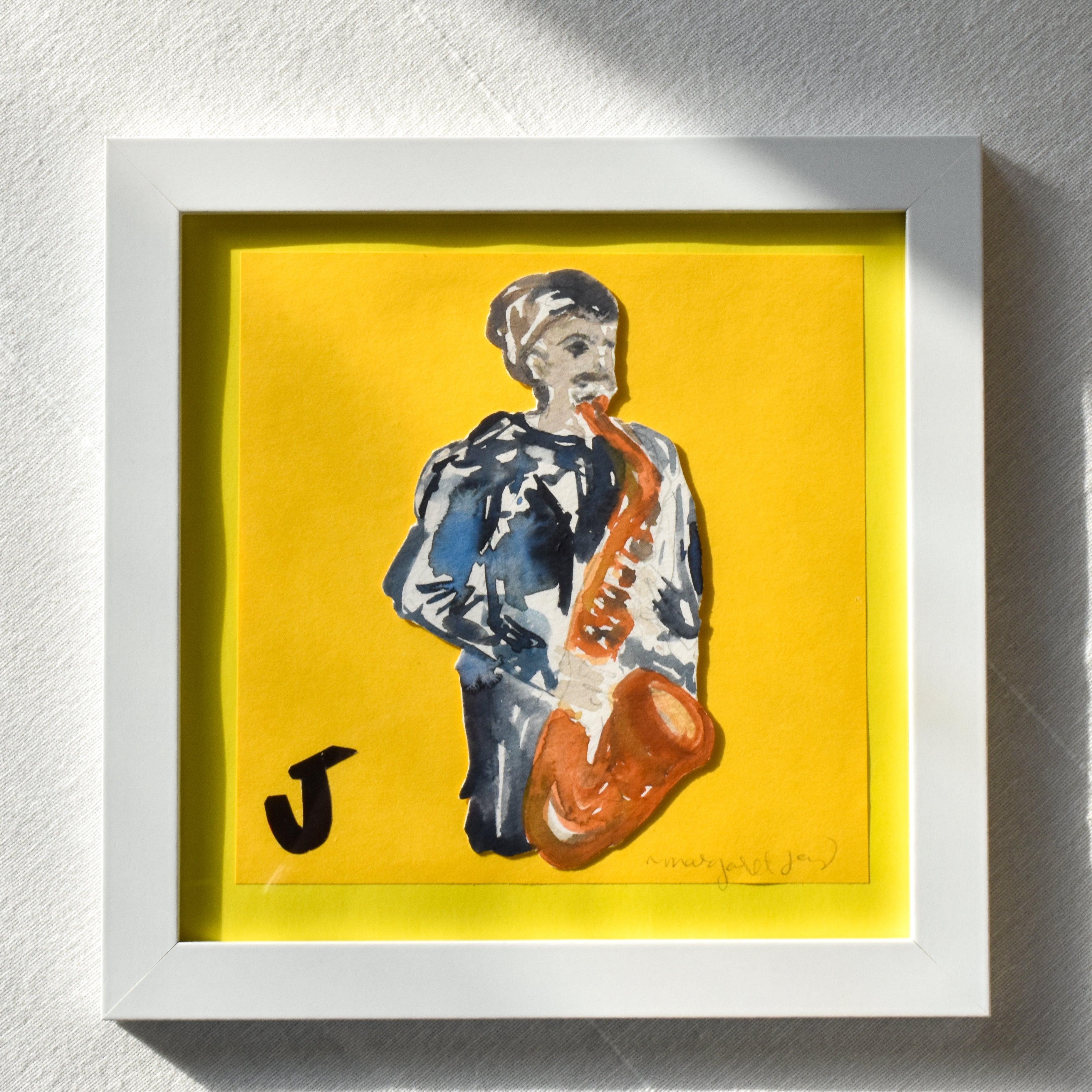 Immerse yourself in the soulful rhythms of this expressive watercolor jazz musician, a standout piece from the "MJ & Friends Vol. 1" collection. Inspired by Stan Getz, this piece creates a dynamic portrait that captures the spirit and movement of jazz.