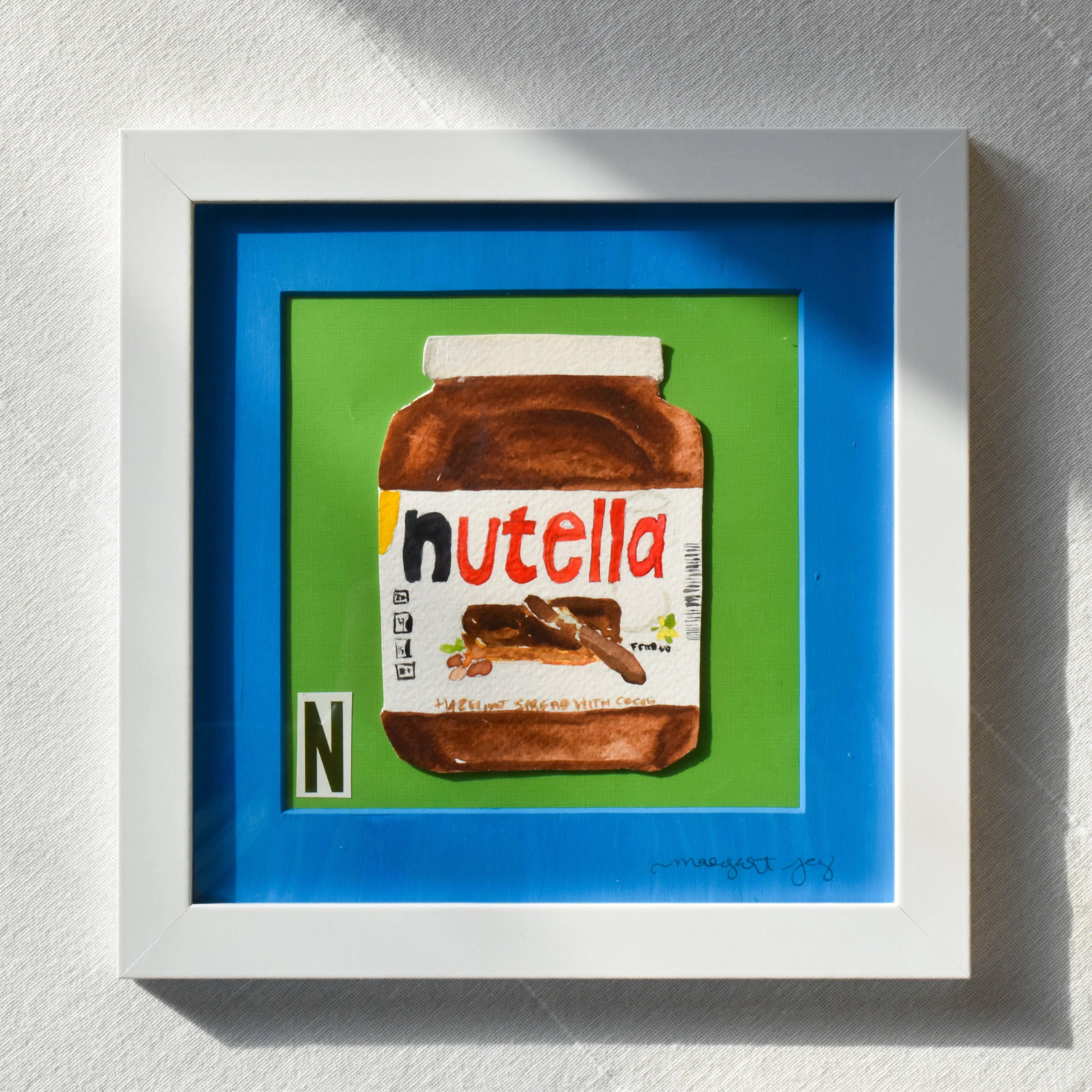 Step into the sweet world of Nutella with this delightful piece from the "MJ & Friends Vol. 1" collection. This playful, retro watercolor artwork captures the beloved hazelnut spread that has brought joy to countless breakfast tables. Perfect for anyone who cherishes sweet moments or appreciates food-inspired art, this piece celebrates the intersection of nostalgia and indulgence.