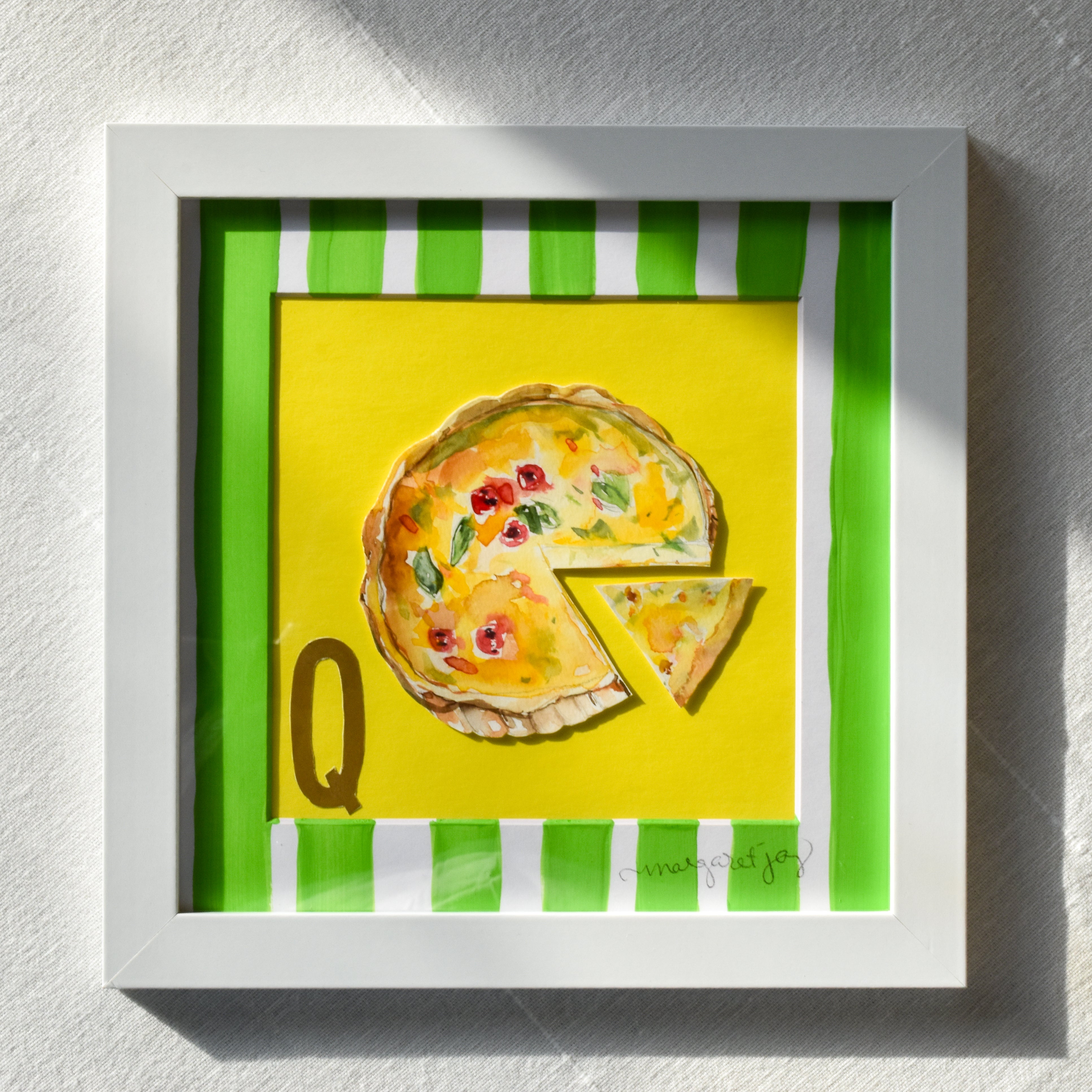 Start your morning right with this heartwarming quiche from the "MJ & Friends Vol. 1" collection! Like a trusted friend in your kitchen nook, this watercolor piece captures the simple joy of a delicious breakfast staple that makes any morning better. Through gentle brushstrokes and mixed media elements, this artwork celebrates those quiet morning moments when a warm slice of quiche turns breakfast into something special.