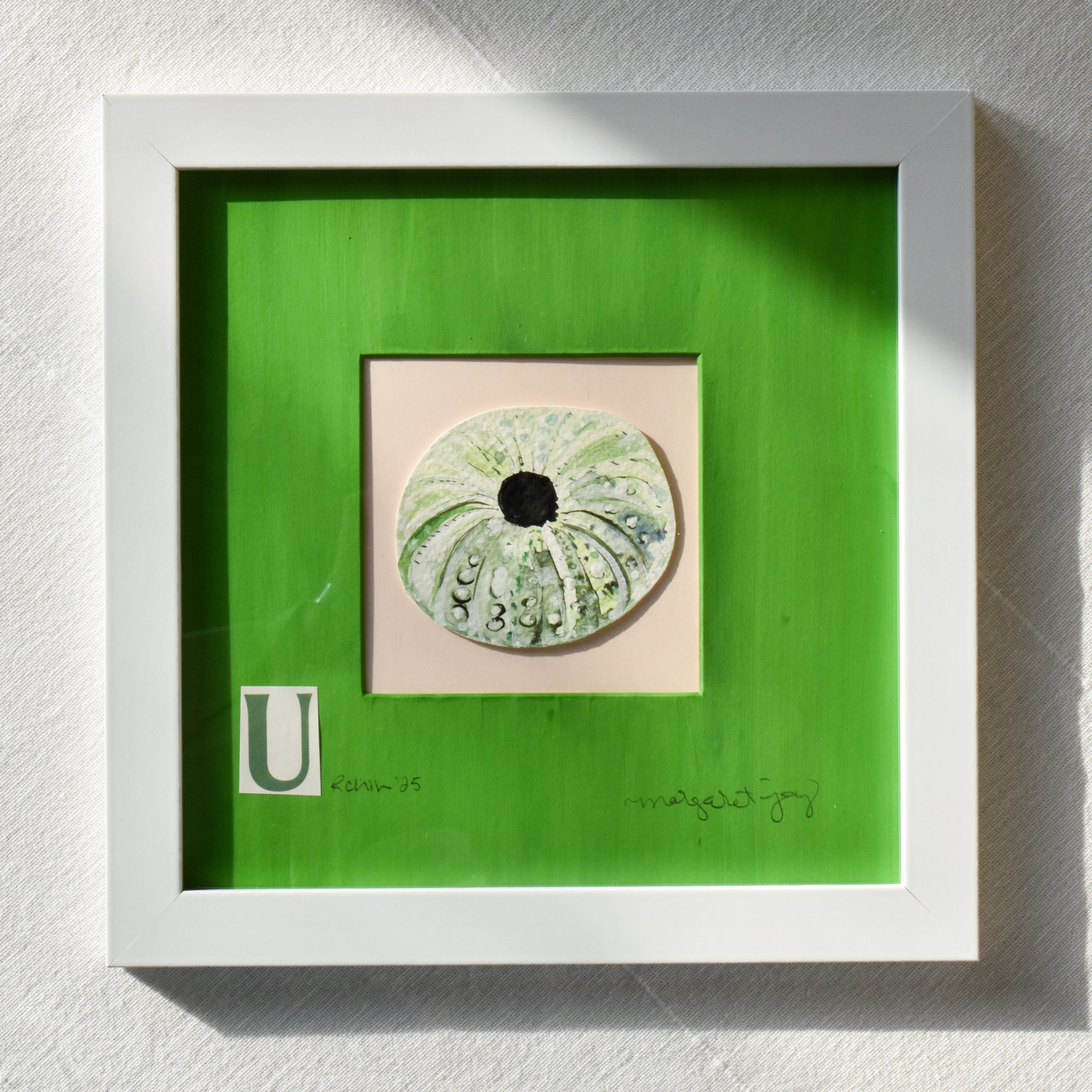 Dive into the depths of whimsy with this enchanting sea urchin from our "MJ & Friends Vol. 1" collection. This mixed media piece is perfect for ocean lovers and nature enthusiasts, this artwork adds a touch of underwater magic to any space.