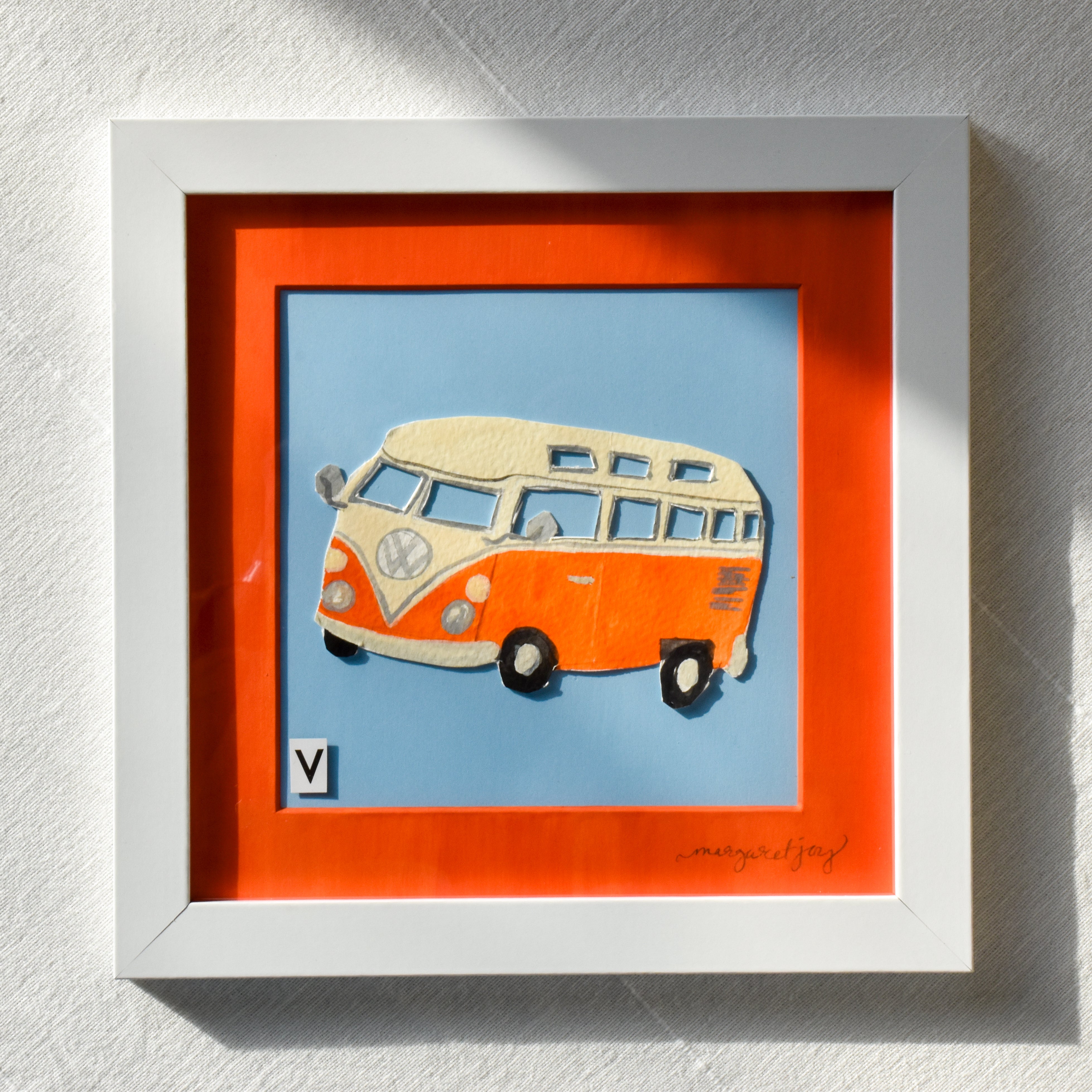 Hit the open road with this charming vintage Volkswagen Bus from the "MJ & Friends Vol. 1" collection. This retro watercolor artwork captures the free-wheeling spirit of the iconic vehicle, perfect for anyone who loves classic automobiles or dreams of adventure.